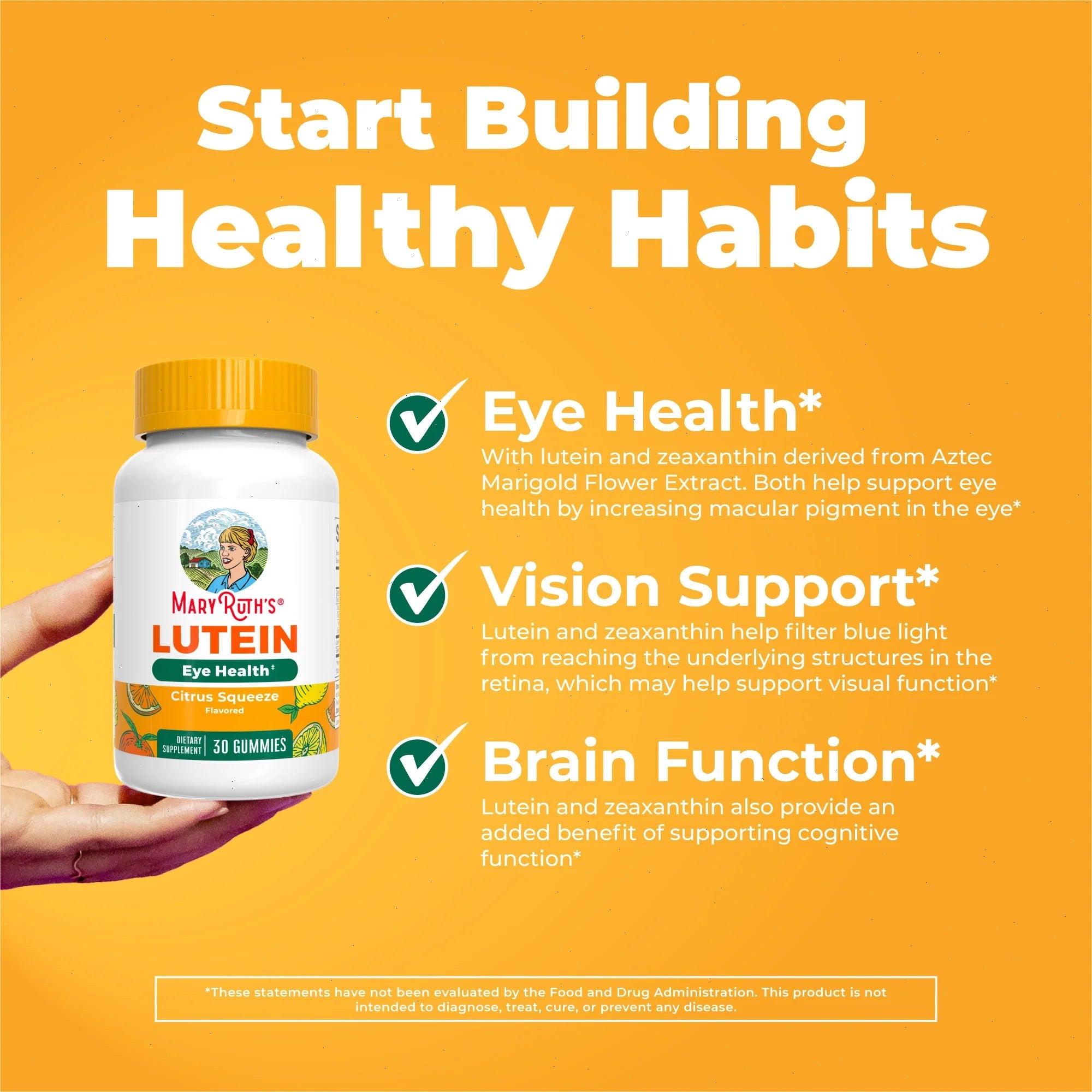 Eye Health: Lutein and Zeaxanthin are two major carotenoids found in the central region of the retina, known as the macula. These tasty gummies are formulated with lutein and zeaxanthin derived from Aztec Marigold Flower Extract. Both lutein and zeaxanthin help support eye health by increasing macular pigment in the eye.