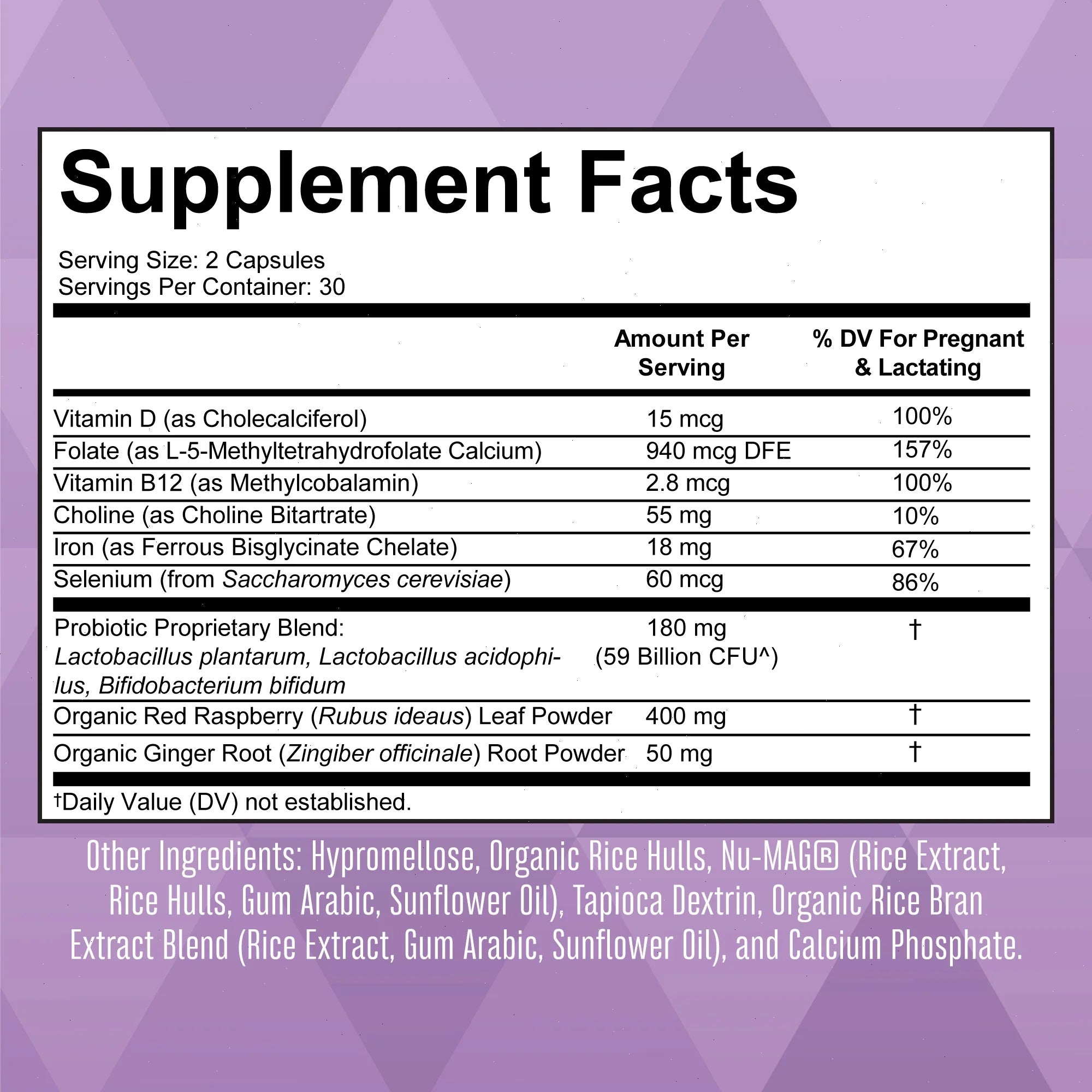 - In addition to probiotics, these capsules also include choline (as VitaCholine®), an essential nutrient for the brain that may help mom's brain health and aid in optimal brain development in the growing baby.